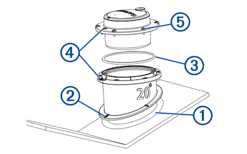 The Garmin GT15M-IH is an in-hull, single-band CHIRP transducer with a 600W power rating that operates in the medium band (85-165 kHz). It ships with four plastic tanks so that the user can choose the correct one for hull deadrise angles between 0° and 25°.