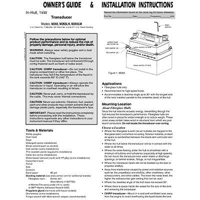 The M265 is an in-hull, 1kW, dual-band CHIRP transducer with a fiberglass tank. It has 8 internal ceramic elements. The M265 is available in either the Low & Medium bands or Low & High bands.