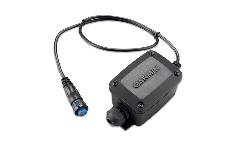 Some CHIRP transducers come with a bare-wire cable and need an adapter box for connection to a sounder or fishfinder. Adapters are available for both Garmin and Raymarine.