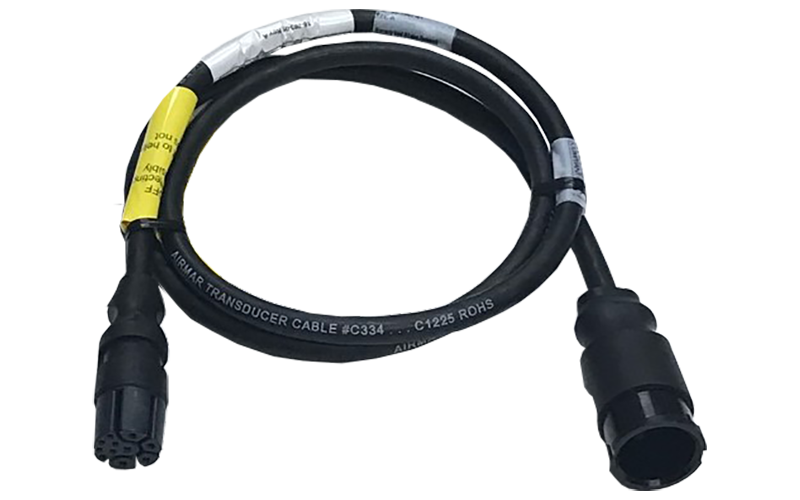 Many Airmar CHIRP transducers are now built and sold as a common base version with a 9-meter attached cable, plus a 1-meter equipment cable for connection to a specific brand of sounder or fishfinder. This gives a total cable length of 10 meters.