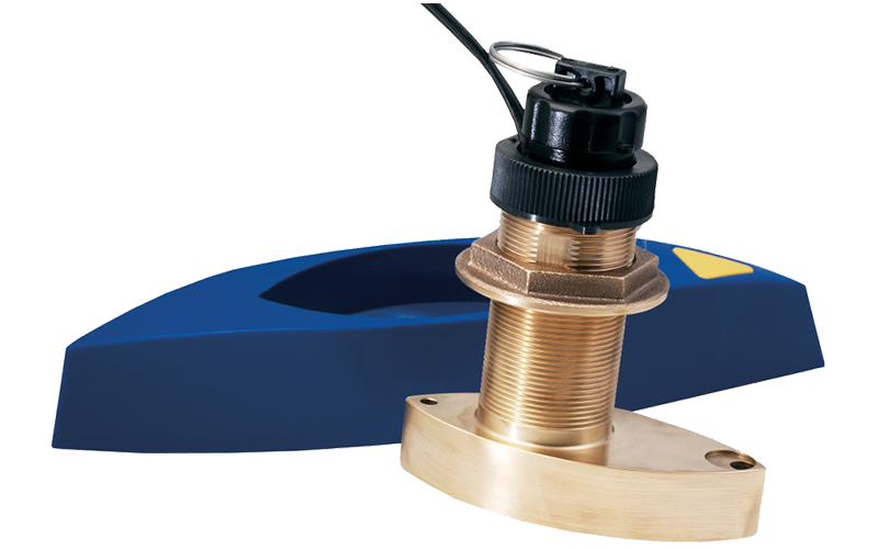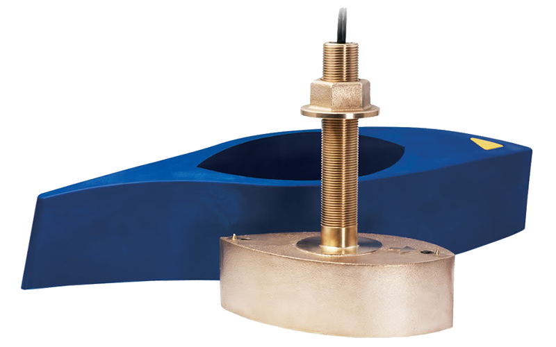 The B275 is a through-hull, 1kW, dual-band, wide-beam CHIRP transducer with a bronze housing and an external fairing. It has 8 internal broadband ceramic elements. The B275 is available only in the Low & High bands with a wide beam.