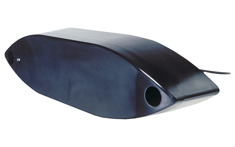 The R111 is an in-hull, dual-band CHIRP transducer with a fiberglass tank. It has 16 internal broadband ceramic elements. The R111 is available in either the Low & Medium bands or Low & High bands.