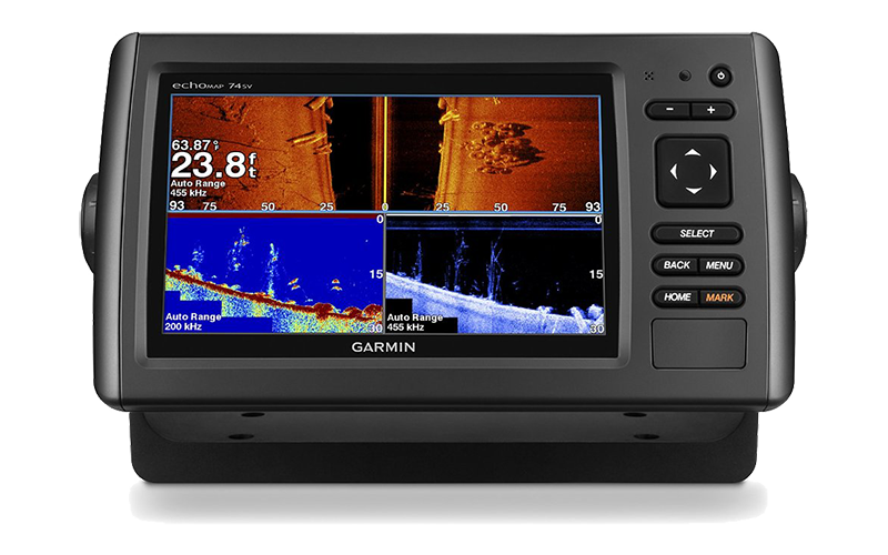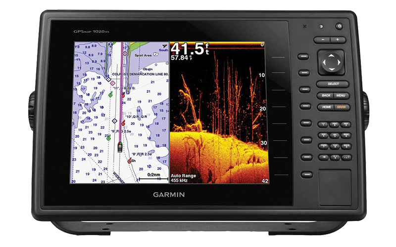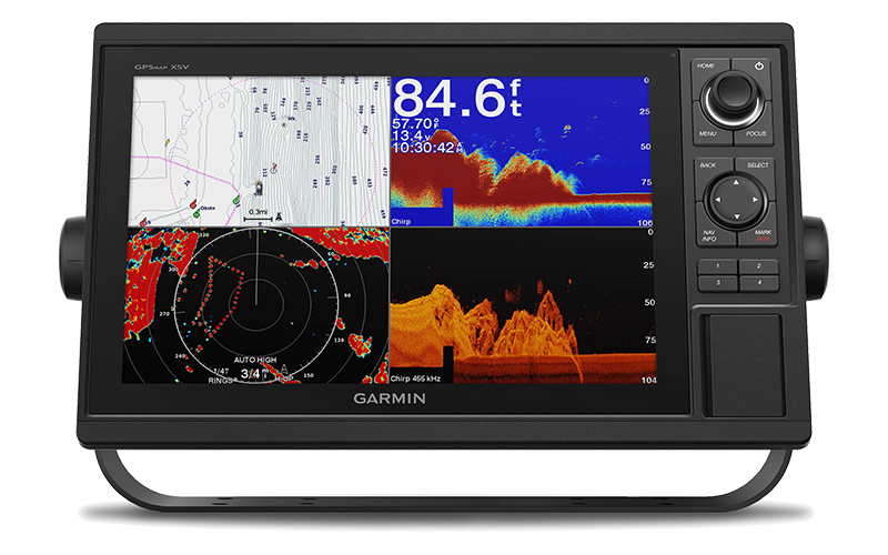 Garmin offers other displays not shown here which need an external sounder box connected through a Garmin Marine Network high-speed cable to be able to handle CHIRP transducers.