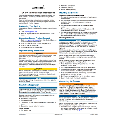 This sounder can only be used with the provided transducer. Connection to the display is by a Garmin Marine Network cable.
