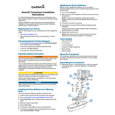 | Transducer Cable | 20 ft with Garmin blue 8-Pin connector |