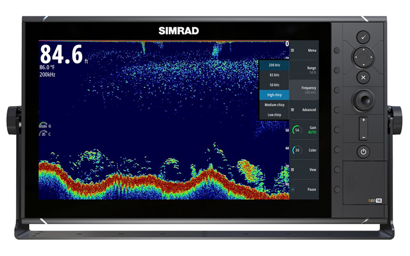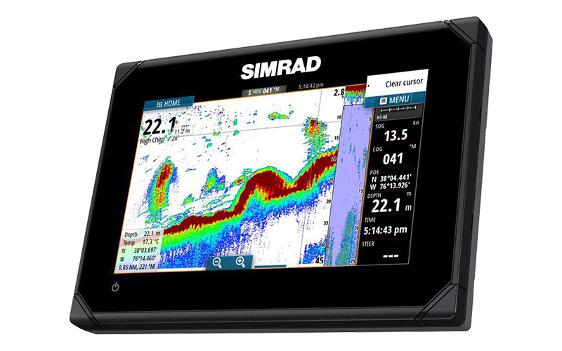 Simrad has three types of fishfinder displays with built-in CHIRP sonar capabilities - the NSS evo2 Series, the GO Series and the S2000 Series.