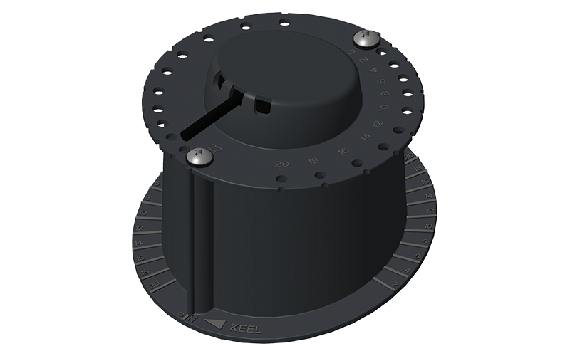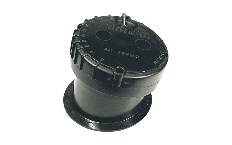 The B150 is a through-hull, low-profile, single-band CHIRP transducer with a bronze housing. It is available in the Medium band only, with a tilt of 0°, 12° or 20° to compensate for hull deadrise.