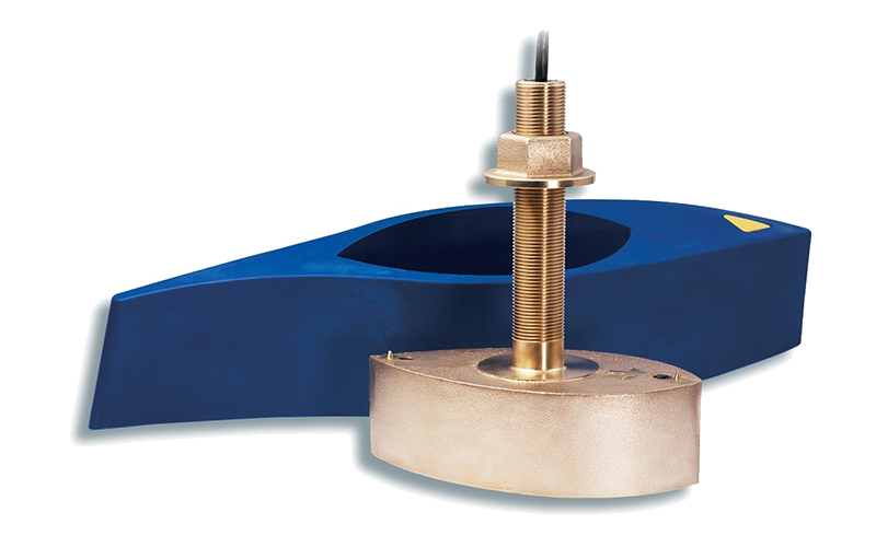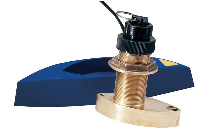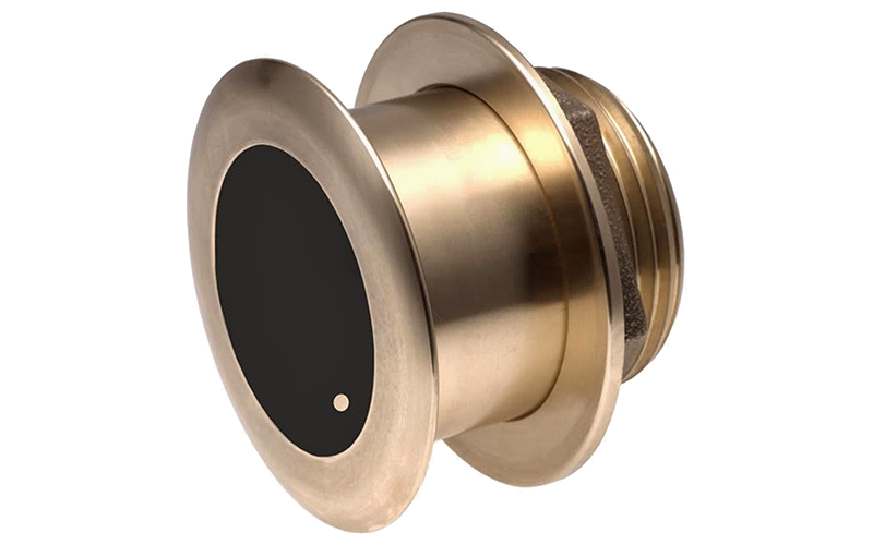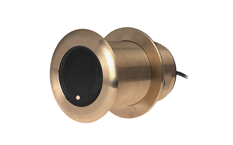 The B285 is a through-hull, single-band CHIRP transducer with a bronze housing and an external fairing. It is available in either the Medium band or in the High band with a wide beam.